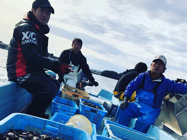 仕事中の風景の写真を掲載する。こちらは牡蠣を触ってる写真なども用意したい。